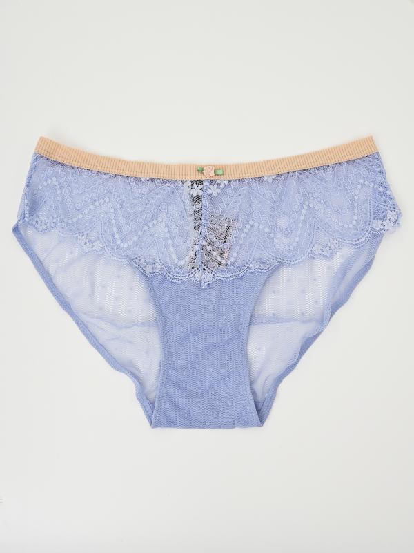 - По бокам и задней части трусов — вставки из сетчатого материала, придающие легкость, воздухопроницаемость и визуальную воздушность образу.