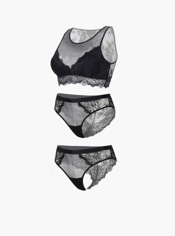 Цвет : Черный Состав : 88% Полиамид 12% Эластан / 85% Полиамид 15% Эластан Комплект нижнего белья выполнен в классическом элегантном стиле, сочетая роскошь кружева с современным дизайном. Глубокий черный цвет и изысканный узор создают атмосферу таинственности и женственности, делая этот комплект идеальным выбором для особенных моментов или повседневного шика.