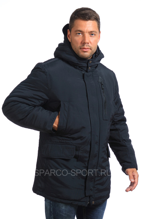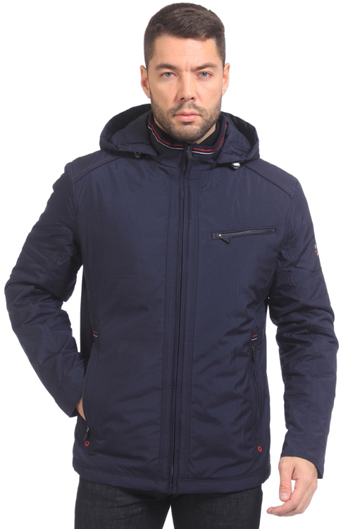 Модель мужской куртки, которая придется по вкусу истинным ценителям классики, воплощенной в спортивном стиле. Изделие имеет слегка удлиненный фасон и выполнено из полиэстера темно-синего цвета. Утеплитель – синтепон. Накладные нагрудные и расположенные на