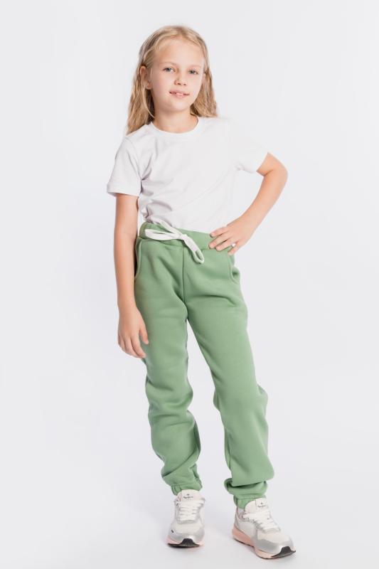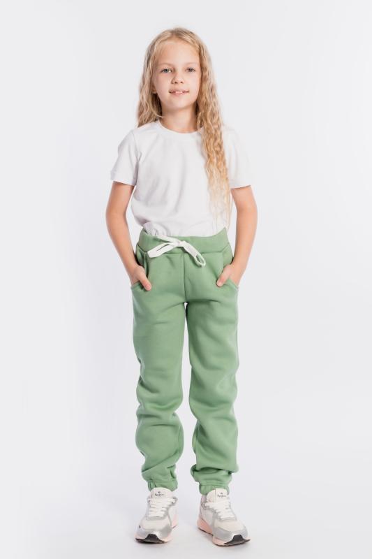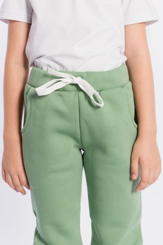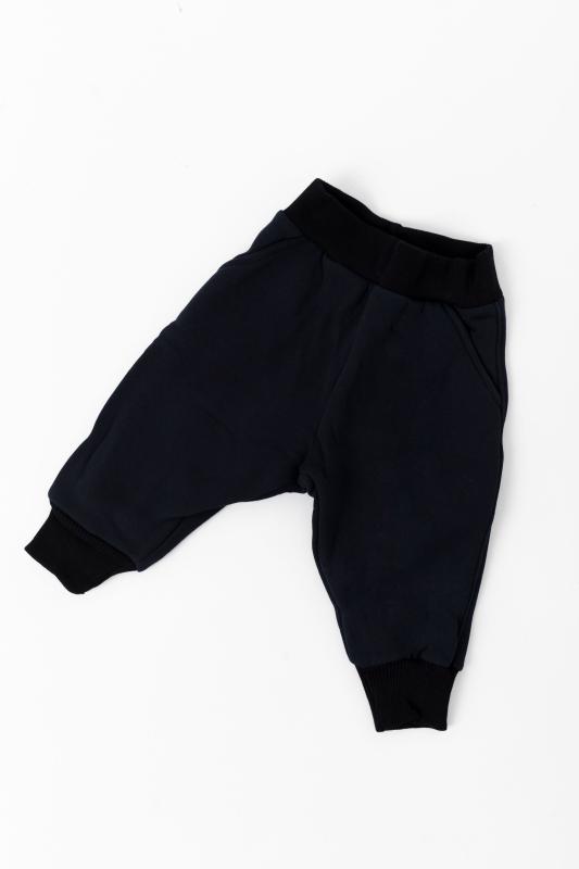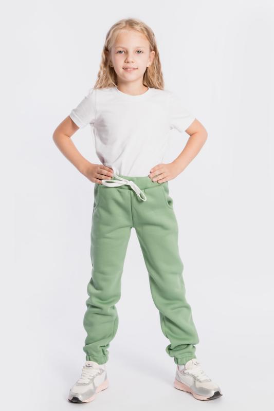Брюки детские выполнены из полотна с начёсом. С карманами спереди, резиной на поясе и манжетами по низу брюк.