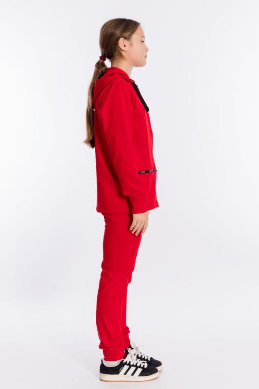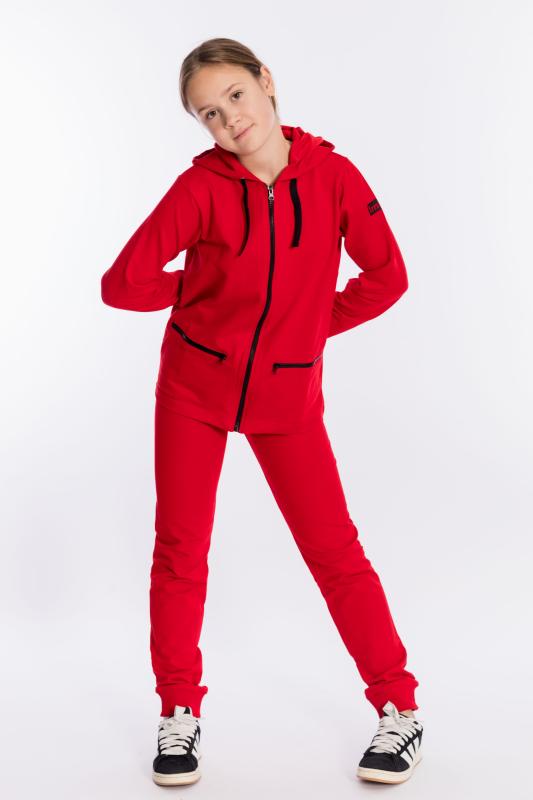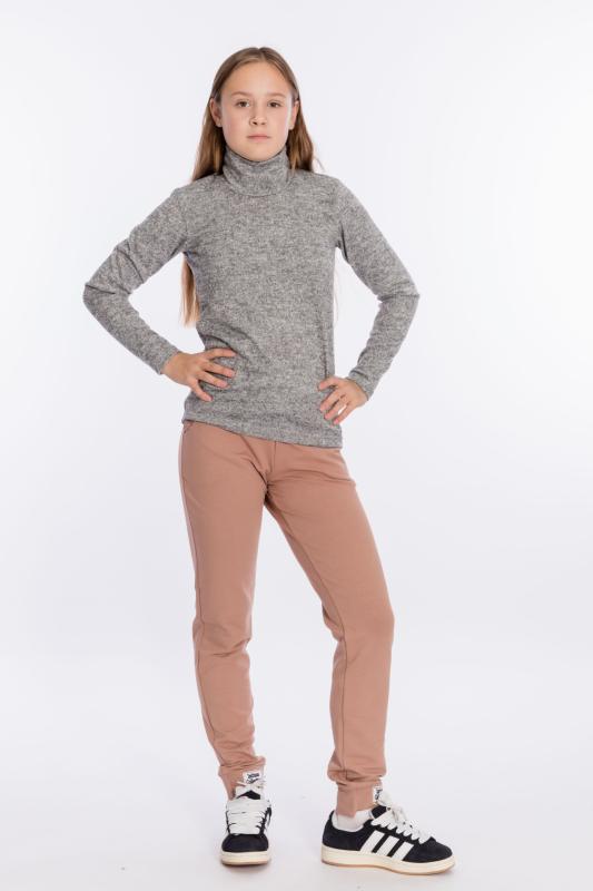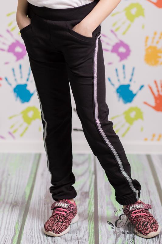Брюки для девочки выполнены из футер петли с лайкрой. Брюки с карманами спереди, с фигурными швами и пришивными лампасами. На резине по поясу и низу. Размерный ряд: 26-42.