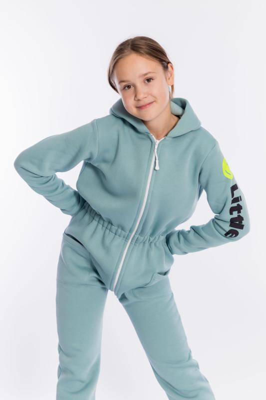 Костюм из футера с начёсом (трёхнитка) серо-голубого цвета — отличный выбор для комфортного повседневного образа. Он состоит из толстовки с капюшоном и брюк. Толстовка имеет удобный крой с карманом-кенгуру и принтом спереди, что придаёт костюму стильный вид. Пояс на талии, низ рукавов и низ брюк оформлены мягкими манжетами из основного полотна, что обеспечивает комфортную посадку и сохраняет тепло. Пояс брюк на широкой резинке со шнуром, что обеспечивает удобную фиксацию и позволяет регулировать посадку. Такой костюм идеально подойдёт для повседневной носки, отдыха или активного отдыха.