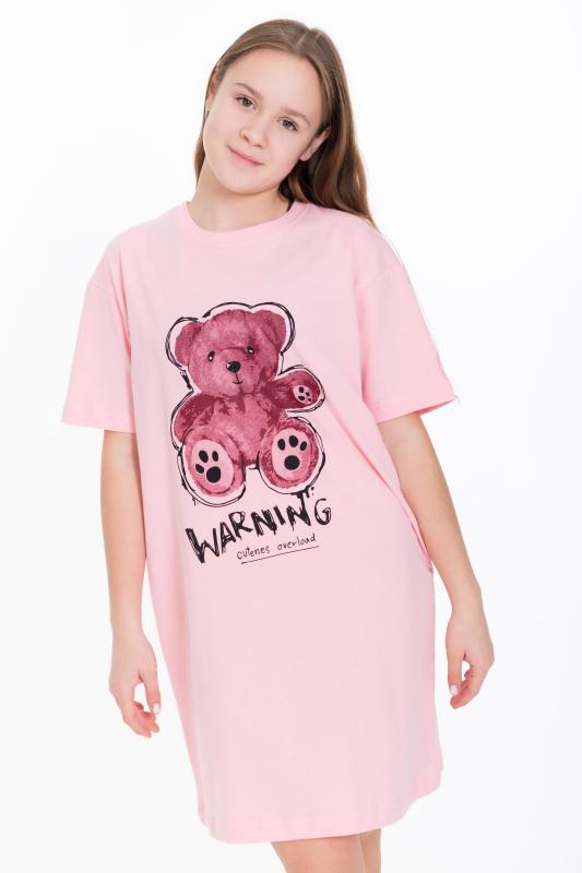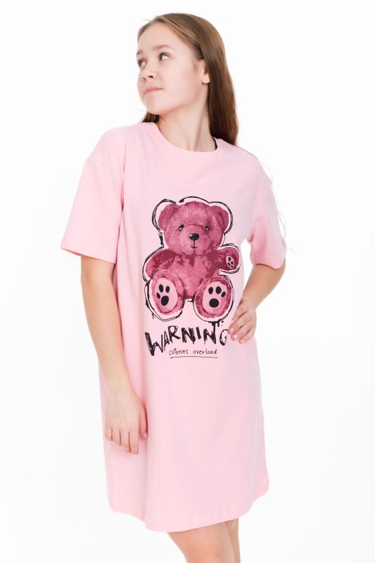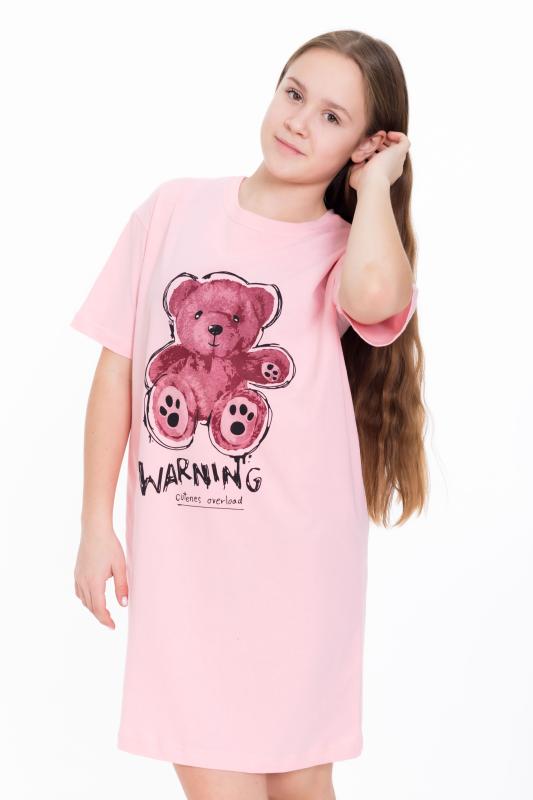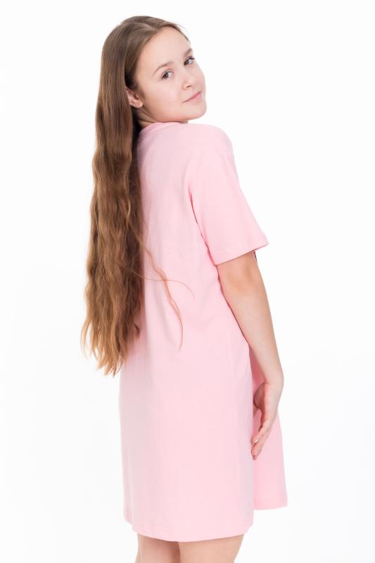 Сорочка-футболка для девочки из однотонной кулирки розового цвета очаровательна и уютна. Прямой крой с коротким рукавом и круглым вырезом горловины делают ее комфортной и практичной в использовании. Принт на передней части добавляет игривости и оригинальности к изделию, придавая индивидуальность. Оформление круглого выреза горловины планкой придает сорочке более завершенный и структурированный вид. Розовый цвет кулирки придает изделию нежность и женственность, что делает его отличным выбором для маленькой модницы. Эта сорочка-футболка будет отличным дополнением к гардеробу девочки. Уютный материал и стильный дизайн делают ее практичным и привлекательным элементом одежды.