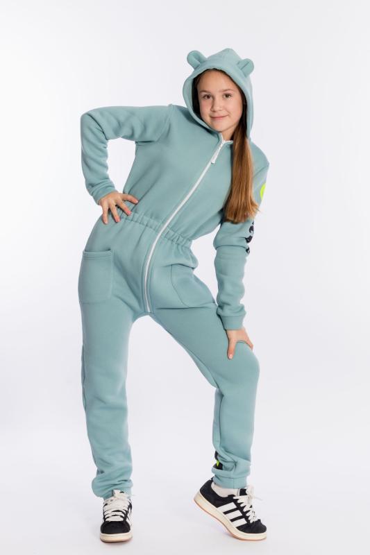 Комбинезон из однотонного футера с начёсом. С капюшоном с "