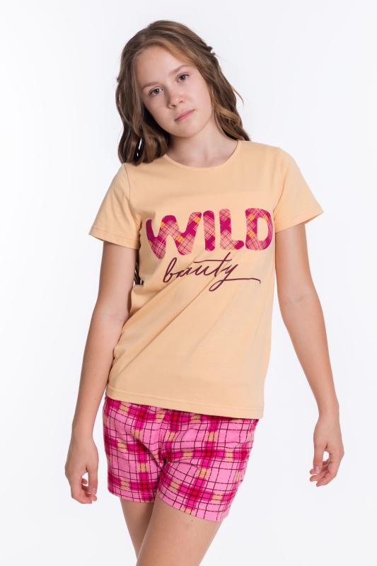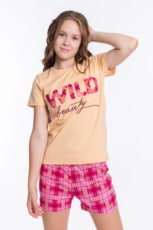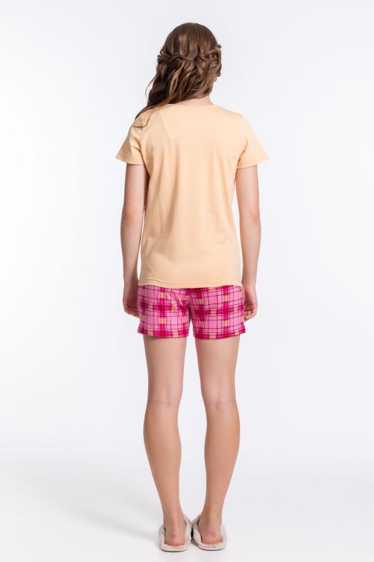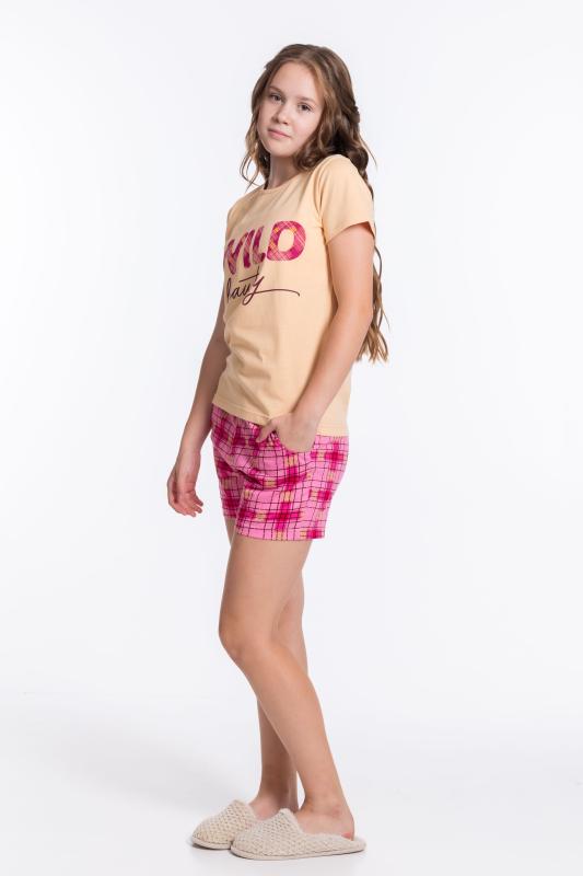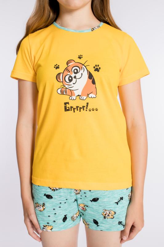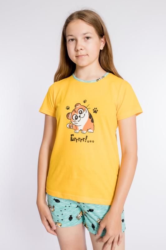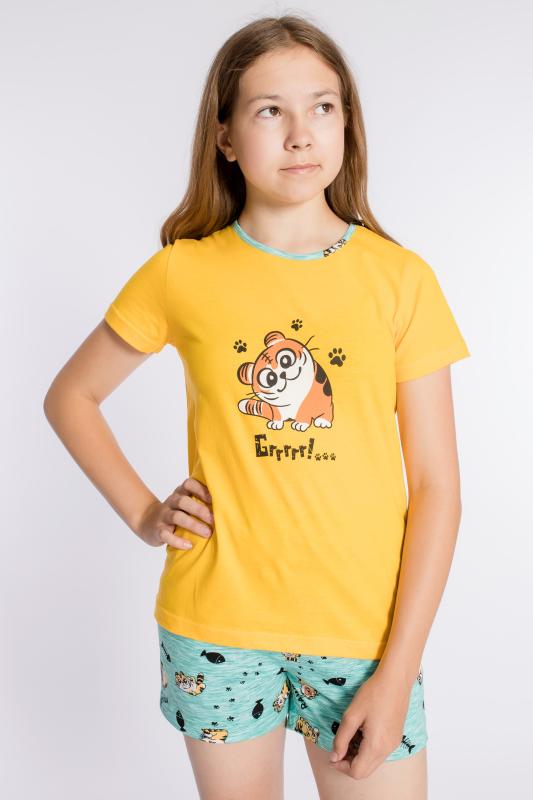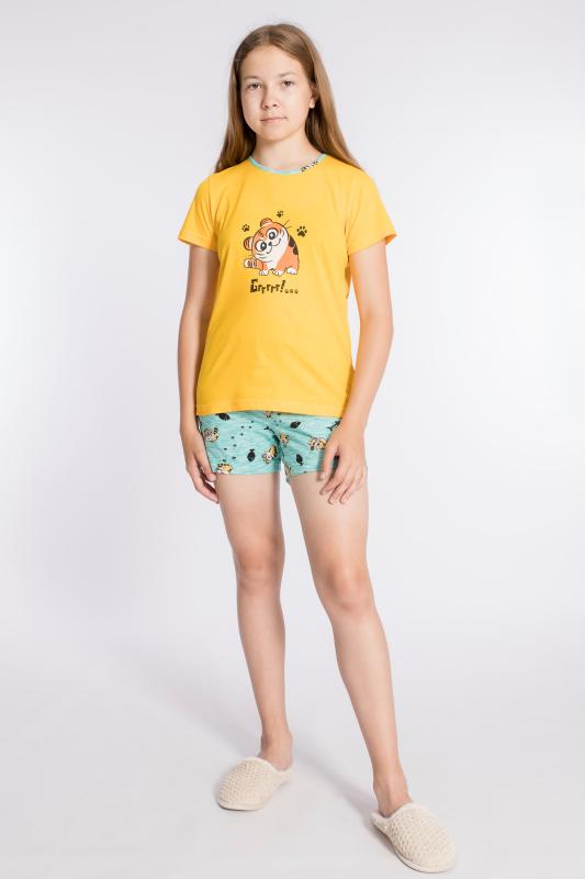 Уютный домашний костюм для девочки изготовлен из натурального хлопкового полотна, которое обеспечивает комфорт и позволяет коже дышать. Костюм состоит из футболки с круглым вырезом горловины и шорт с поясом на резинке и карманами по бокам. Футболка с принтом спереди — стильный элемент костюма, который понравится вашей девочке. Шорты обеспечивают свободу движений и удобство, а пояс на резинке гарантирует комфортную посадку. Такой домашний костюм идеально подойдёт для повседневной носки, отдыха или сна. Он станет отличным дополнением к гардеробу вашей девочки.