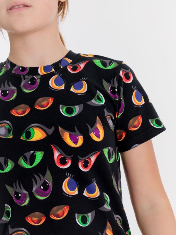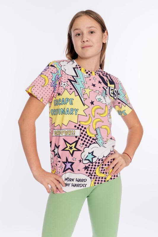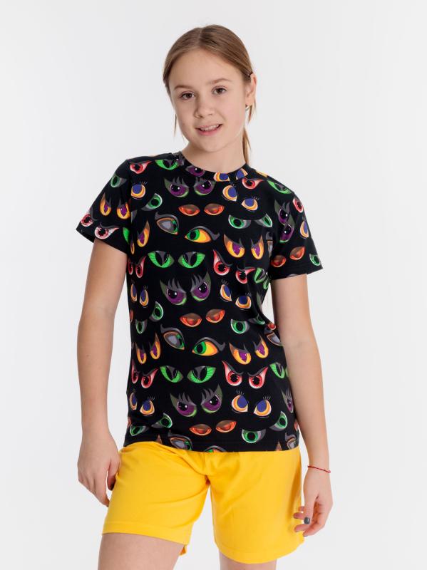 Детская футболка с принтом изготовлена из хлопкового полотна, что обеспечивает комфорт и хорошую воздухопроницаемость. Футболка имеет короткий рукав и круглый вырез горловины, что придает ей классический стильный вид. Такая модель футболки отлично сочетается с джинсами, брюками или юбкой. Изготовленная из натуральной ткани, футболка обеспечит комфорт в течение всего дня.