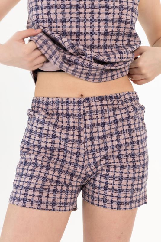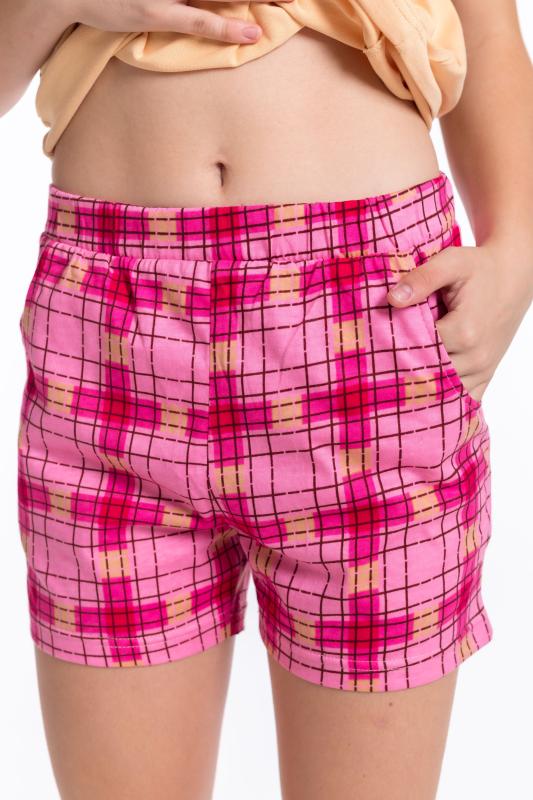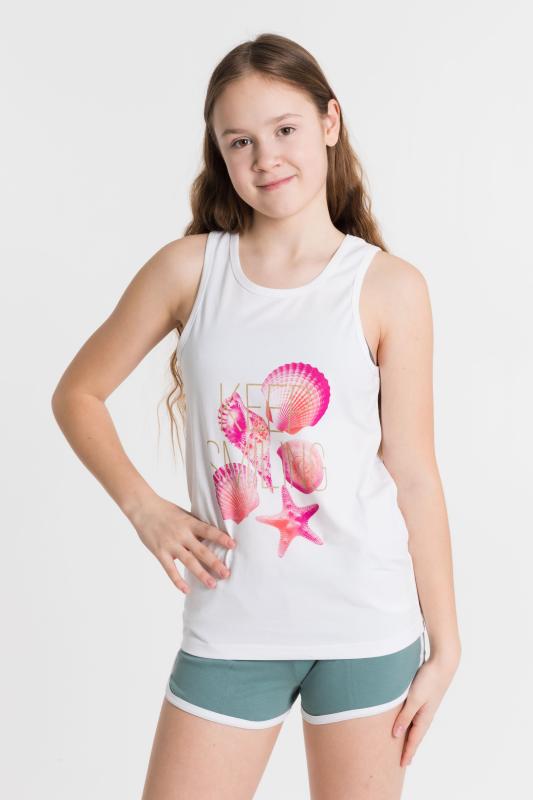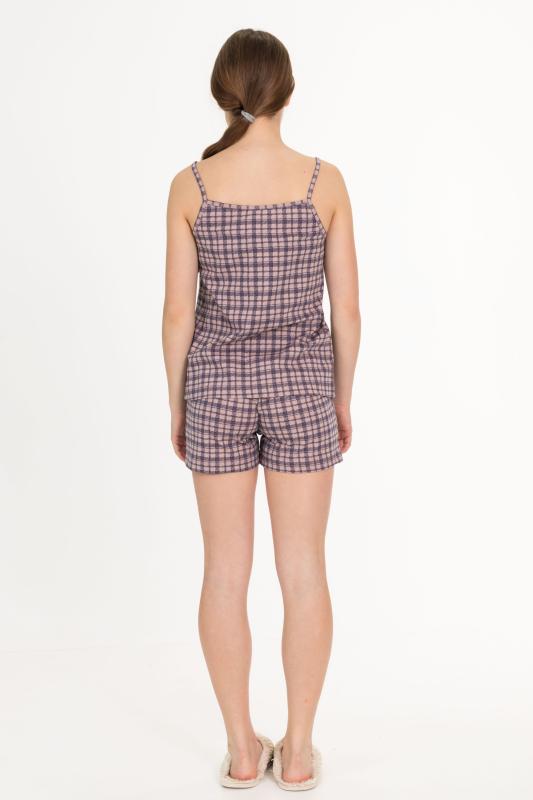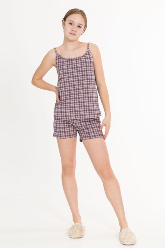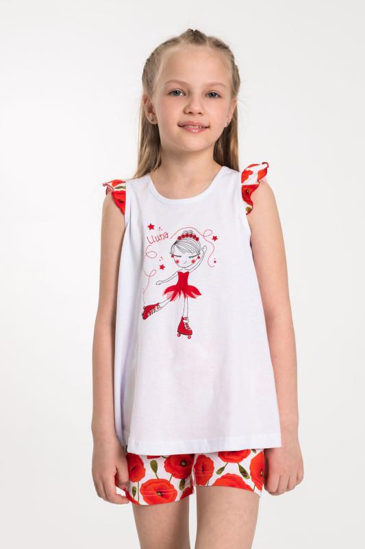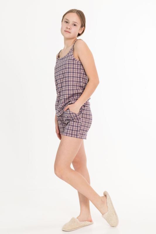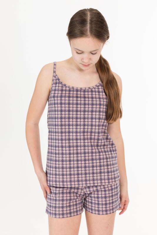 Пижама дя девочек из 100% хлопка. Майка на бретелях, шорты короткие с поясом на резинке и боковыми карманами.