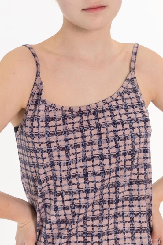 Топ на тонких бретелях выполнен из хлопкового полотна с добавлением лайкры. Плотно облегает фигуру, обеспечивая свободу движений засчёт эластичности ткани.