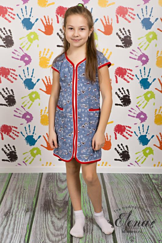 Халат с застёжкой на молнию выполнен из х-б полотна. Спереди расположены два кармана. Все срезы халата обработаны бейкой с кантом контрастного цвета.