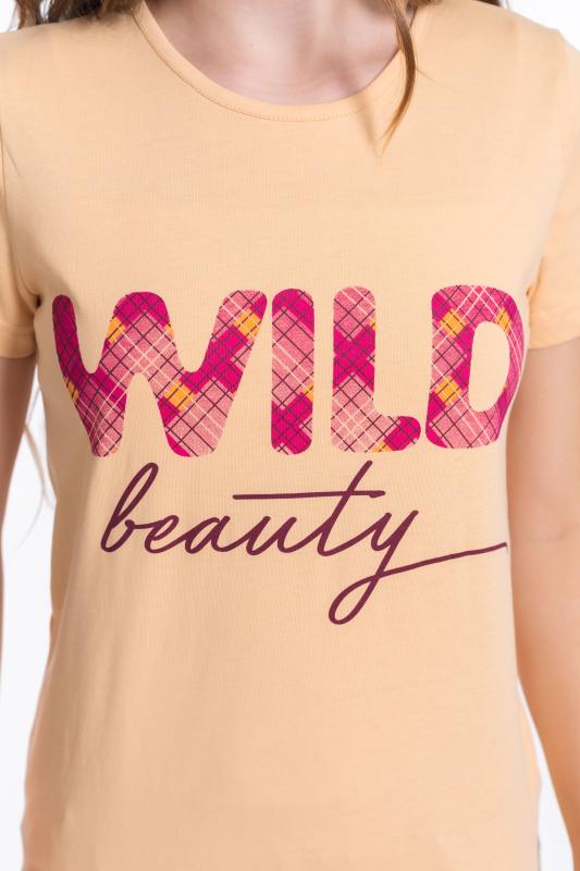 Футболка выполнена из кулирки с лайкрой. С коротким рукавом и круглым вырезом горловины.