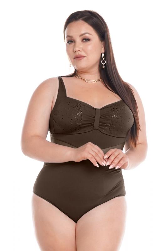 Впечатляющий и одновременно удобный слитный купальник - универсальная модель для бассейна и пляжа. Благодаря глубокому U-образному вырезу спинки и широким бретелям, этот купальник обладает возможностью комфортного надевания и отличной фиксацией на теле. Длина бретелей регулируется с помощью металлической пряжки. Лиф дублирован подкладкой из мягкой микрофибры и имеет поролоновые чашечки. Каркас по низу красиво обрамляет грудь и обеспечивает хорошую поддержку. Модель имеет классический вырез бёдер, который способствует оптимальной посадке по фигуре. Стразы на груди добавляют изысканности, а оригинальная драпировка по переду искусно обыгрывает область живота, скрывая мелкие недостатки. Из-за объемных чашек эти купальники будут особенно актуальны для девушек с пышным верхом и небольшим низом. Эластичный материал обеспечивает комфорт и свободу движения. В этом формирующем фигуру купальнике вы наилучшим образом продемонстрируете свою элегантность и чувство стиля. (Материал устойчив к воздействию хлора. Чтобы сохра