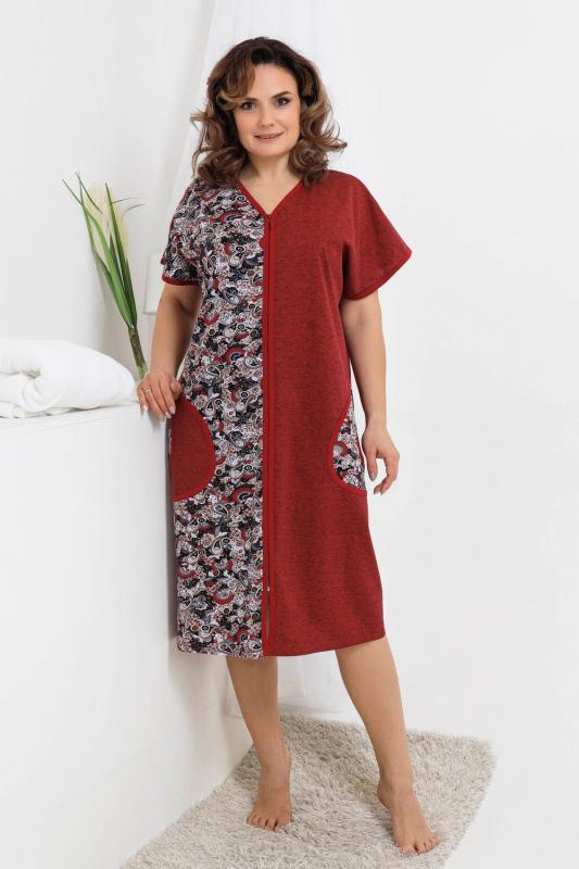 Домашнее платье из хлопкового трикотажа. Модель слегка приталенного силуэта, со слегка спущенным плечом и накладным кармашком спереди. Несколько ярких расцветок на Ваш выбор.