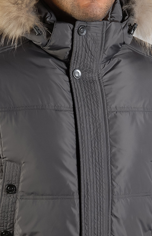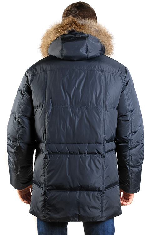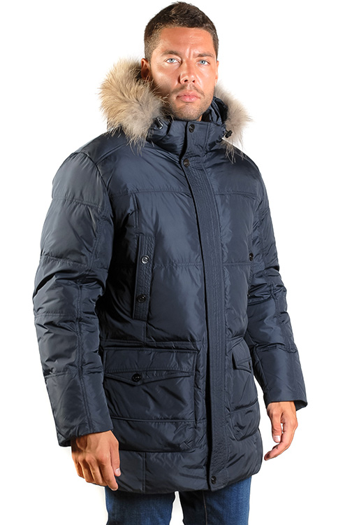 Верхняя ткань: полиэстер 100% Подкладка: полиэстер 100% Утеплитель: пух 80%, перо 20%.Мех: енот Описание Мужской пуховик 1344 из 100% полиэстера, который использован и как подкладочная ткань, и как основа. Выполнен в трех расцветках: темно-синий, антраци