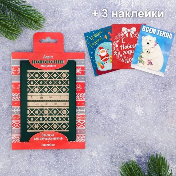 Обложка для автодокументов + набор наклеек (3 шт.) "Дарит новогоднее настроение!"
