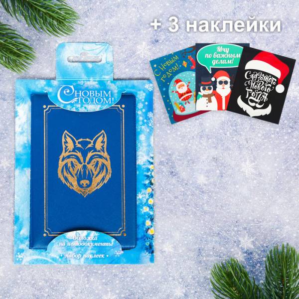Обложка для автодокументов + набор наклеек (3 шт.) "С Новым годом!"