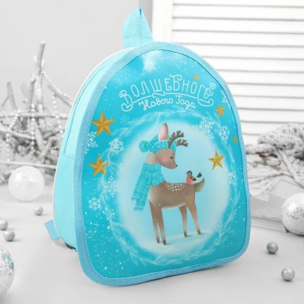 Рюкзак детский новогодний, отдел на молнии, цвет голубой