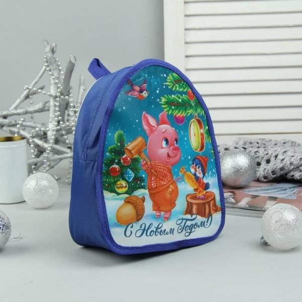 Рюкзак детский новогодний, отдел на молнии, цвет синий