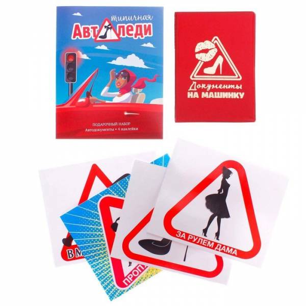 Набор: обложка для автодокументов и 4 наклейки "Автоледи"