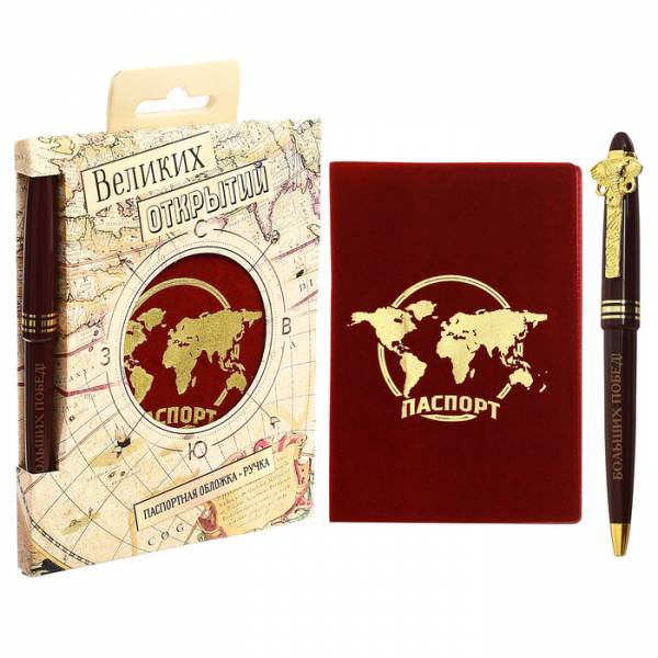 Подарочный набор "Великих открытий": обложка для паспорта и ручка