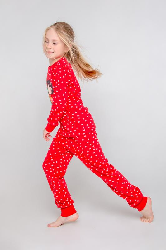 Пижама для девочки Crockid из трикотажа интерлок пенье. Джемпер и брюки с набивным рисунком. На рукавах джемпера - широкие манжеты, низ обработан плоскими швами. На полочке украшен новогодним принтом. В брюках эластичный пояс на резинке и мягкие манжеты.