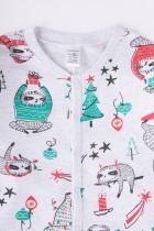 Пижамный комбинезон Crockid из трикотажа интерлок пенье. Украшен набивным рисунком с новогодними ленивцами. На рукавах и штанинах - эластичные и мягкие манжеты. Спереди по центру застёгивается на кнопки.