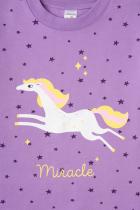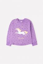 Джемпер для девочки из петельчатого футера. Спущенные плечи создают свободный силуэт. На рукавах - эластичные манжеты. Спинка удлинена и скруглена. Украшена набивными звёздами и крупным принтом на полочке.