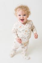 Мягкие трикотажные ползунки Crockid из рибаны без бокового шва. Широкий пояс отворачивается. Украшены набивным рисунком.