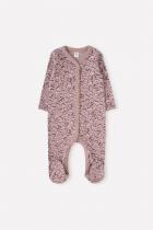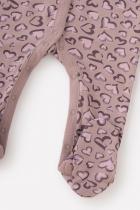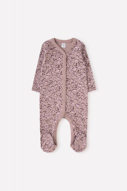 Комбинезон для девочки из мягкого трикотажа интерлок с закрытыми ножками. Украшен набивным рисунком. Застёгивается по центру на кнопки. В 56 размере на рукавах есть отвороты-антицарапки.