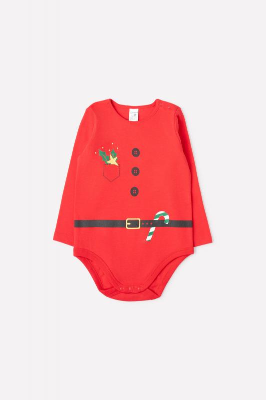 Боди из натурального хлопка с длинными рукавами. Украшено новогодними принтами. Застёгивается на кнопки на плече и в паху.
