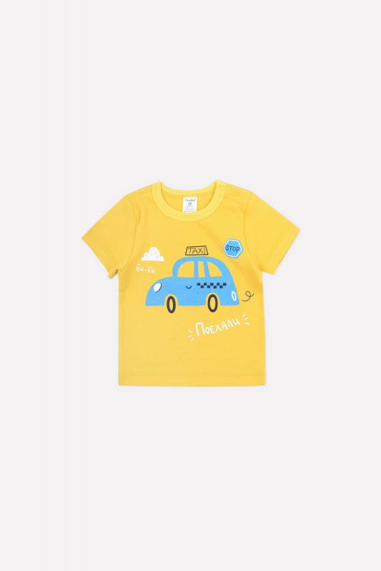 Футболка для мальчика Crockid из трикотажного хлопка. Короткие рукава. Застёжка на 2 кнопки в области плеча. Спереди принт.