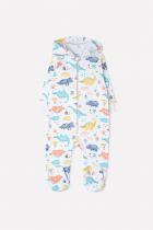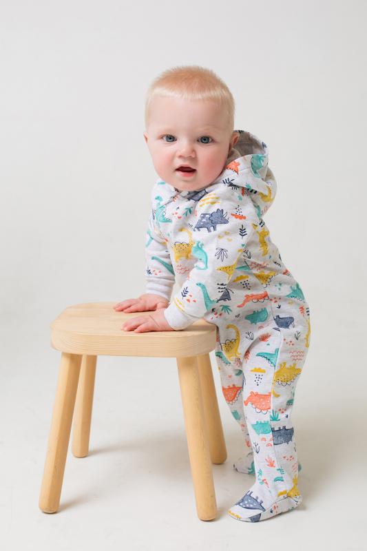 Комбинезон для мальчика из тонкого футера с начёсом с закрытыми ножками. В размерах 80, 86 - на ножках манжеты. Застёгивается на молнию. Предусмотрена защита шеи и подбородка. На рукавах - эластичные манжеты. Капюшон с мягким подкладом из интерлока.