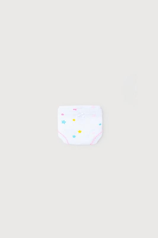 Трусы для девочки Crockid сшиты из эластичного материала рибана пенье. Цвет - белые с набивкой радужный звездопад. Проймы обработаны бейкой.