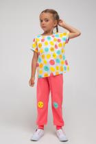 Тип ткани: Футер петля. Состав: 100% хлопок. Брюкидля девочки Crockid с резинкой в поясе. Сшиты из однотонного трикотажа футер петля с принтом на коленях в виде цветных шариков. Пояс регулируется по ширине с помощью ленты. Внизу эластичные манжеты. По бокам два удобных кармана.