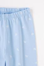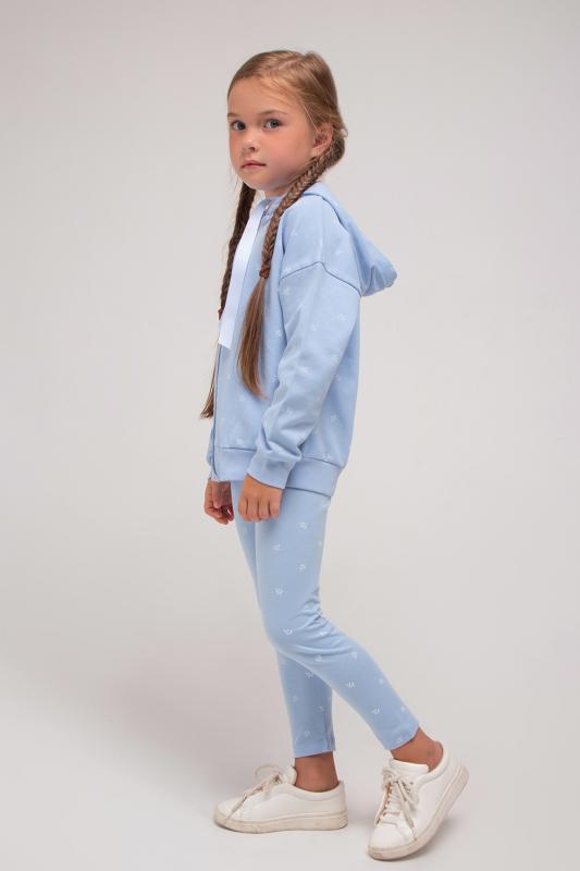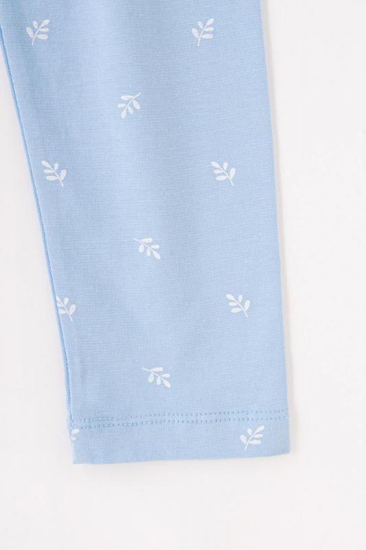 Лосины для девочки Crockid с поясом на резинке. Сшиты из набивного трикотажа супрем с эластаном в голубом оттенке с изображением веточек. Эластан в составе делает изделие эластичным и позволяет избегать деформаций во время носки. Низ обработан плоскими швами.