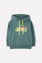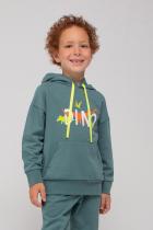 Толстовка для мальчика Crockid с тонким капюшоном. Сшита из однотонного трикотажа футер петля и украшена принтом на груди. Капюшон утягивается с помощью ленты. Длинные рукава со спущенными плечами оканчиваются эластичными манжетами. Внизу мягкий пояс. Впереди вместительный накладной карман-кенгуру.
