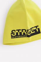 Шапочка для мальчика Crockidв оливковом цвете из однотонного трикотажа супрем с эластаном. Украшена принтом.