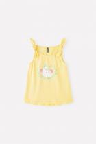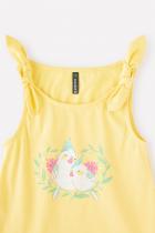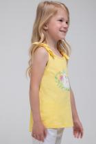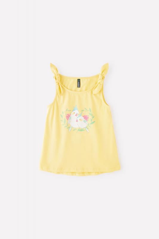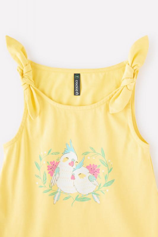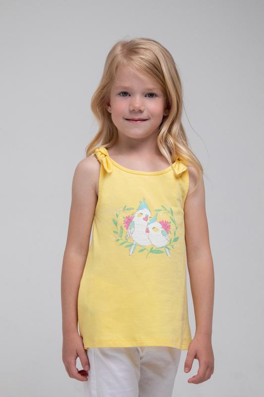 Летняя майка для девочки Crockid с декоративными завязками нежно-розового цвета. Украшена изображением птичек..