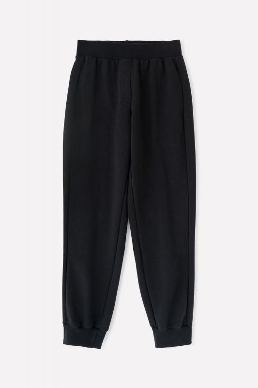Однотонные брюки для девочки с поясом на резинке. Сшиты из хлопкового трикотажа футер петля. По бокам удобные карманы. Внизу - эластичные манжеты.