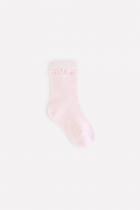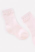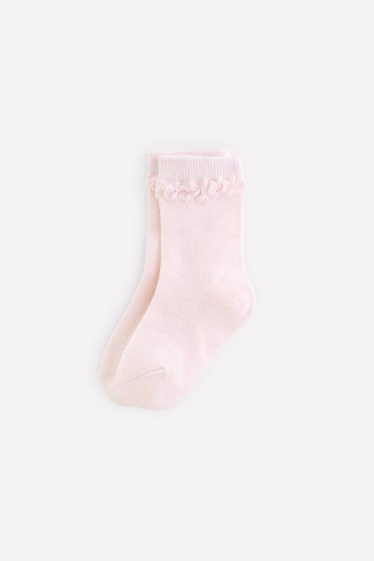 Короткие трикотажные носки для девочки. Эластичная резинка по верхнему краю, основание резинки украшено объёмными элементами.