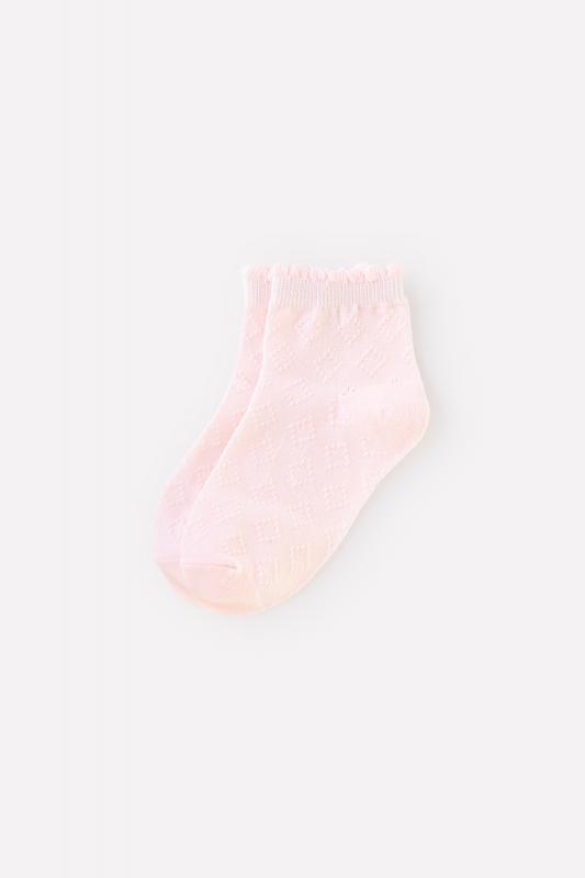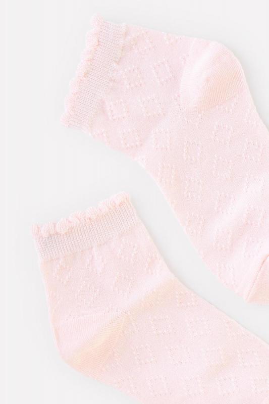 Короткие нарядные носочки для девочки. Эластичная резинка по верхнему краю. Украшены ажурным рисунком в ромбик.