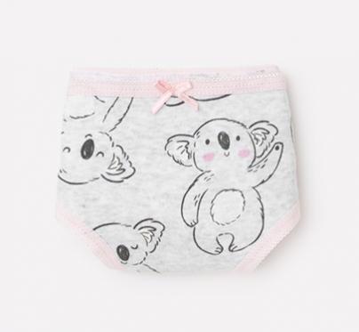 Трусы для девочки Crockid сшиты из эластичного материала рибана пенье. Цвет - серые с набивкой коалы. Пояс и проймы обработаны резинкой.