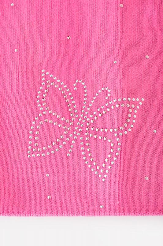 Шапка для девочки Crockid из акриловой пряжи кораллового оттенка с внутренним отворотом. Украшена аппликацией из страз в форме бабочки.