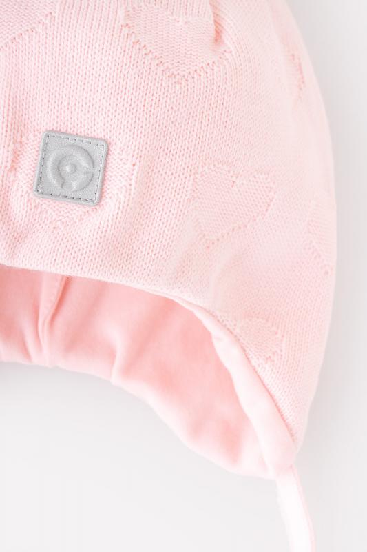 Шапка для девочки Crockid на завязках из акриловой пряжи с вывязаными сердечками. Мягкий трикотажный подклад из интерлока. Для безопасности в тёмное время суток на передней части шапочки предусмотрена светоотражающая нашивка. На макушке - петелька-бантик.