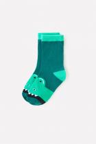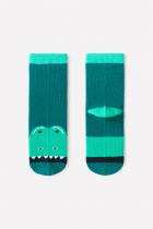 Длинные трикотажные носки Crockid. Эластичная резинка по верхнему краю. Украшены рисунком с изображением динозавра.