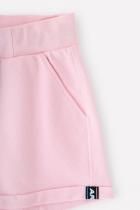 Розовые шорты с широким поясом на резинке. Сшиты из хлопкового трикотажа футер петля. Регулируются по ширине с помощью ленты. По бокам удобные карманы. Внизу - закреплённые отвороты.