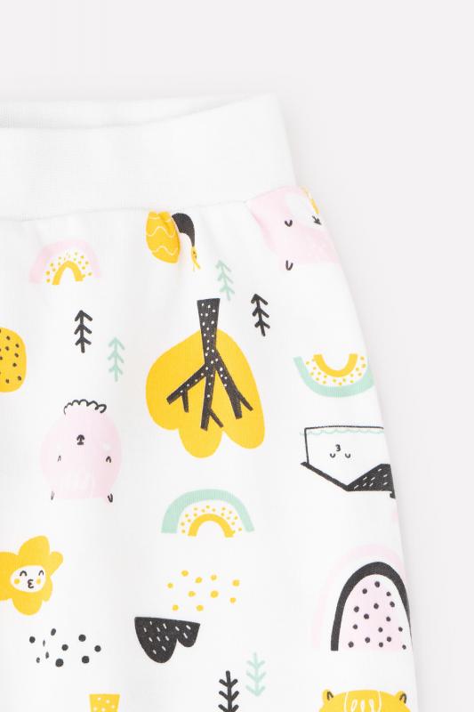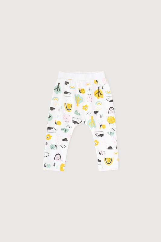 Набивные брюки Crockid из натурального хлопка. Сшиты из мягкого трикотажа интерлок и украшены рисунком с домиками в лесу. Пояс на резинке. Низ обработан плоскими швами.