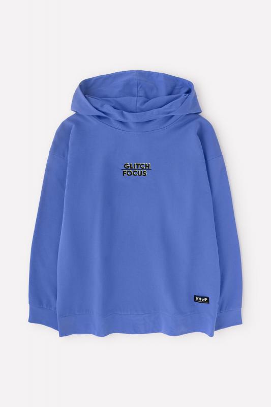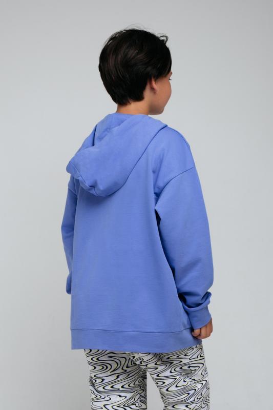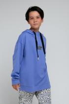 Толстовка для мальчика с капюшоном для мальчика. Сшита из хлопкового трикотажа футер петля. Капюшон с подкладом из супрема утягивается с помощью ленты. Рукава со спущенными плечами оканчиваются манжетами. Пояс выполнен из эластичного материала с добавлением лайкры. Украшена принтом на груди и жаккардовой нашивкой.