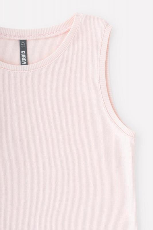 Однотонная майка для девочки из приятного материала кашкорсе с эластаном. Эластан в составе делает изделие эластичным и помогает ему дольше сохранять первоначальный вид.