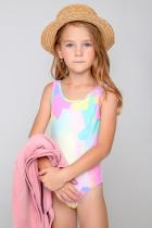 Купальник в радужную полоску на узких лямках для девочки Crockid. По горловине и в проймах для рук эластичный кант. В проймах для ног эластичная резинка для плотного прилегания.