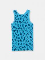 Майка для мальчика Сherubino с плечом из набивного полотна. Горловина и проймы обработаны окантовкой из основного полотна.